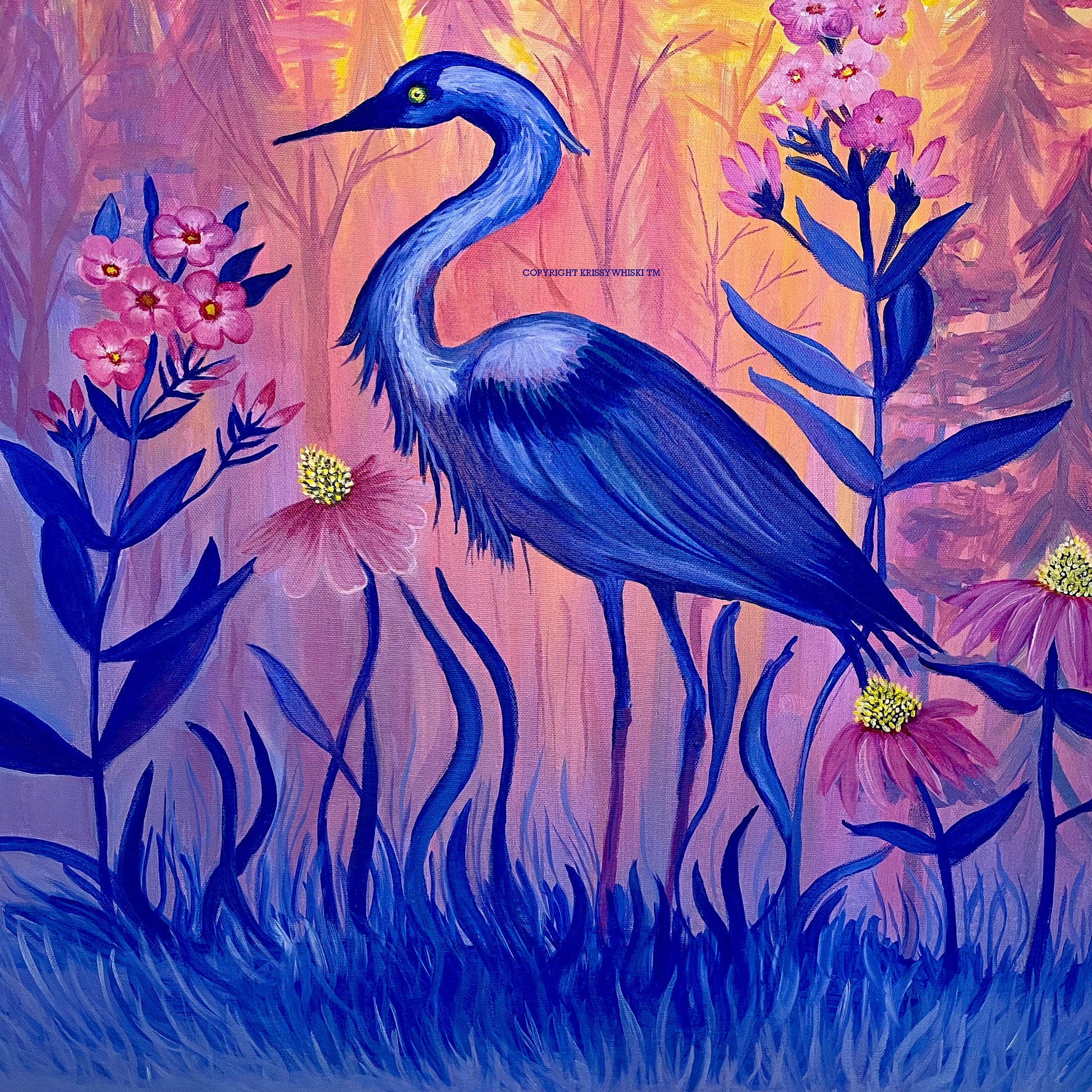 This painting was inspired by the beauty of nature when lakeside and is perfect to hang in a lake house or for someone who loves nature, dragonflies, blue herons, sunrises, and sunsets.