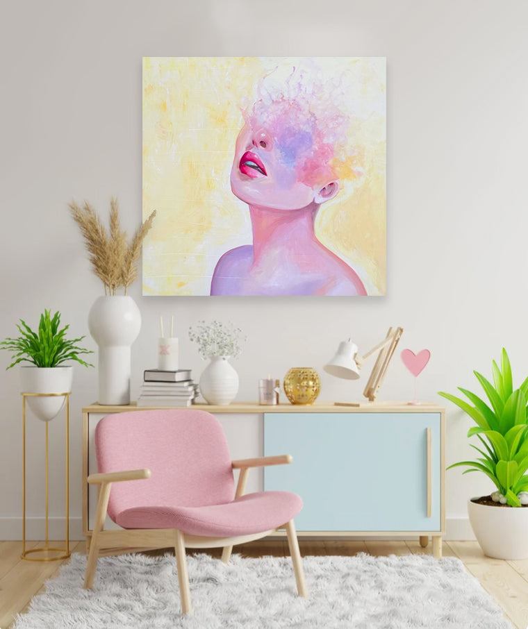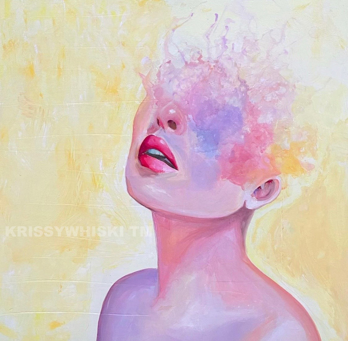Mind Blown is a 30x30 original acrylic on canvas painting by artist Krissy Whiski