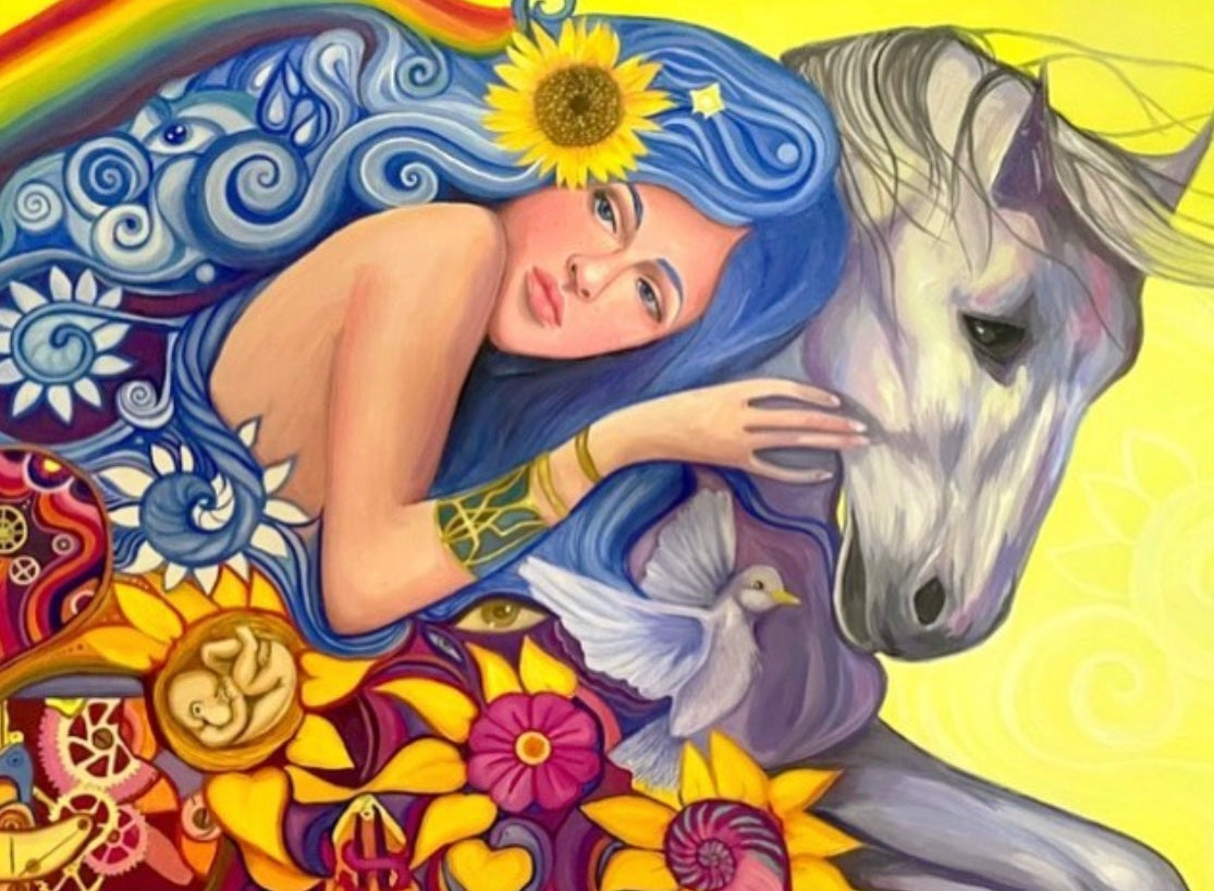 Rhiannon is a 24x40” original acrylic painting on 1.5" deep gallery wrapped canvas.