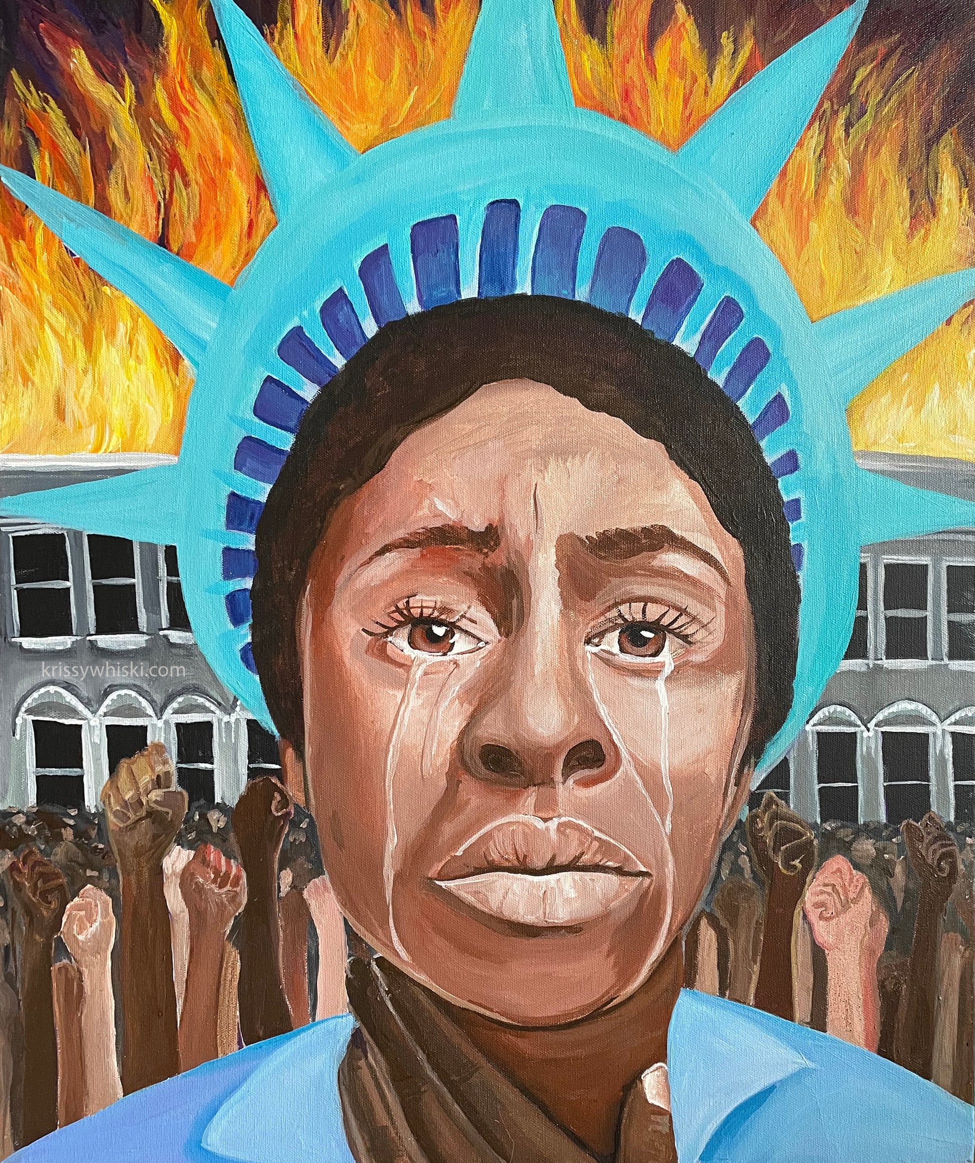 Yearning to Breath Free is a 20x24" original acrylic on canvas painting by artist Krissy Whiski